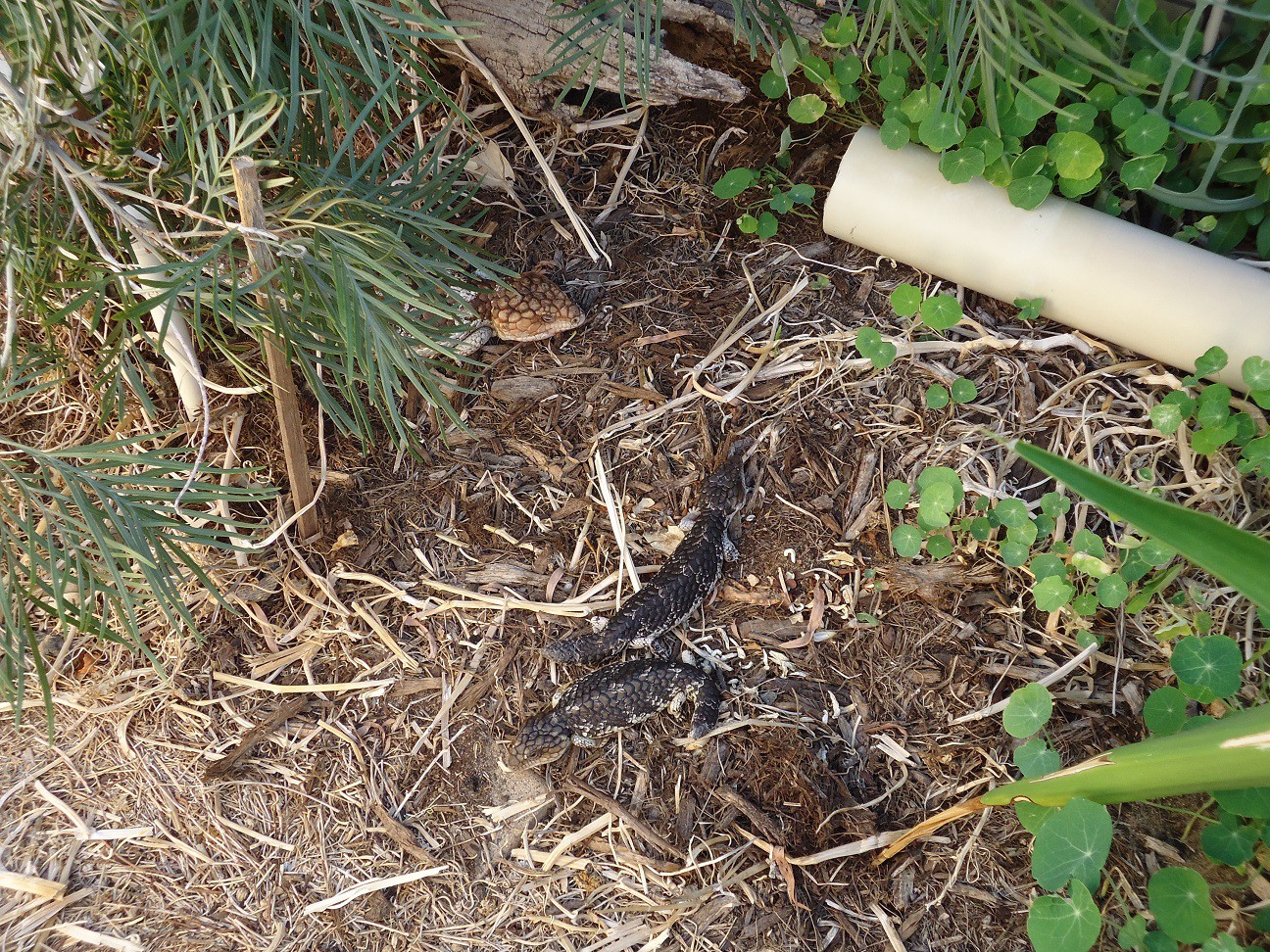 Mum and Dad Bobtail have taken up long term residence in our back yard KJ and have been here for years, they probably reckon they are onto a good thing with water and the odd extra feed on hand now and then when the snails/bugs are getting low.