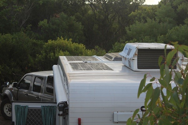 After talking to David (Plendo) about his research as well as the van manufacturer (Coramal) we decided to have the flexible panels bonded directly to the aluminium panel roof.The reasons for this are twofold. Firstly the weight involved in mounting rigid panels with the framing advised by the caravan maker. Secondly we do almost all our travelling during winter so heating of interior of van would not be a problem. Yes we do loose efficiency due to heating but have ample panels for our power consumption. To date three weeks after fitting have not needed any external power input travelling in Vic and southern SA.