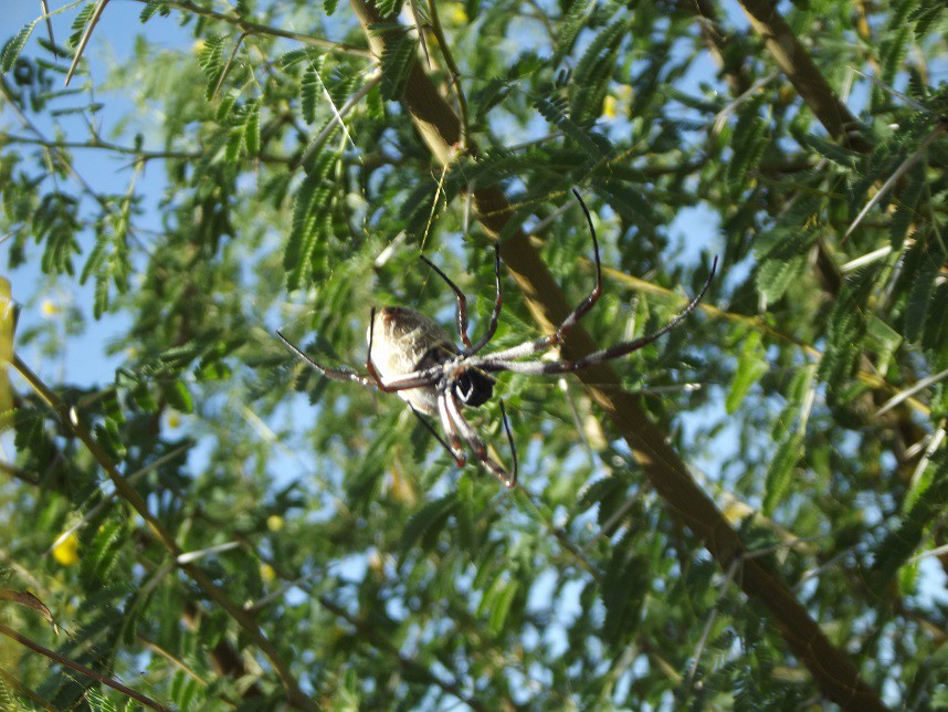 Not sure what this huge spider is but it's sitting in the tree next to us here at Long Waterhole Winton.