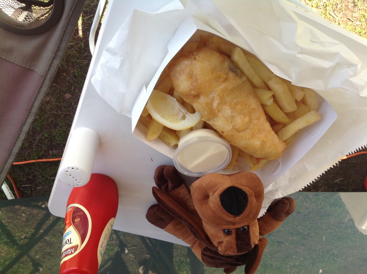 You will see Pugs that Rufus was so excited by fish and chips that he was doing cartwheels.