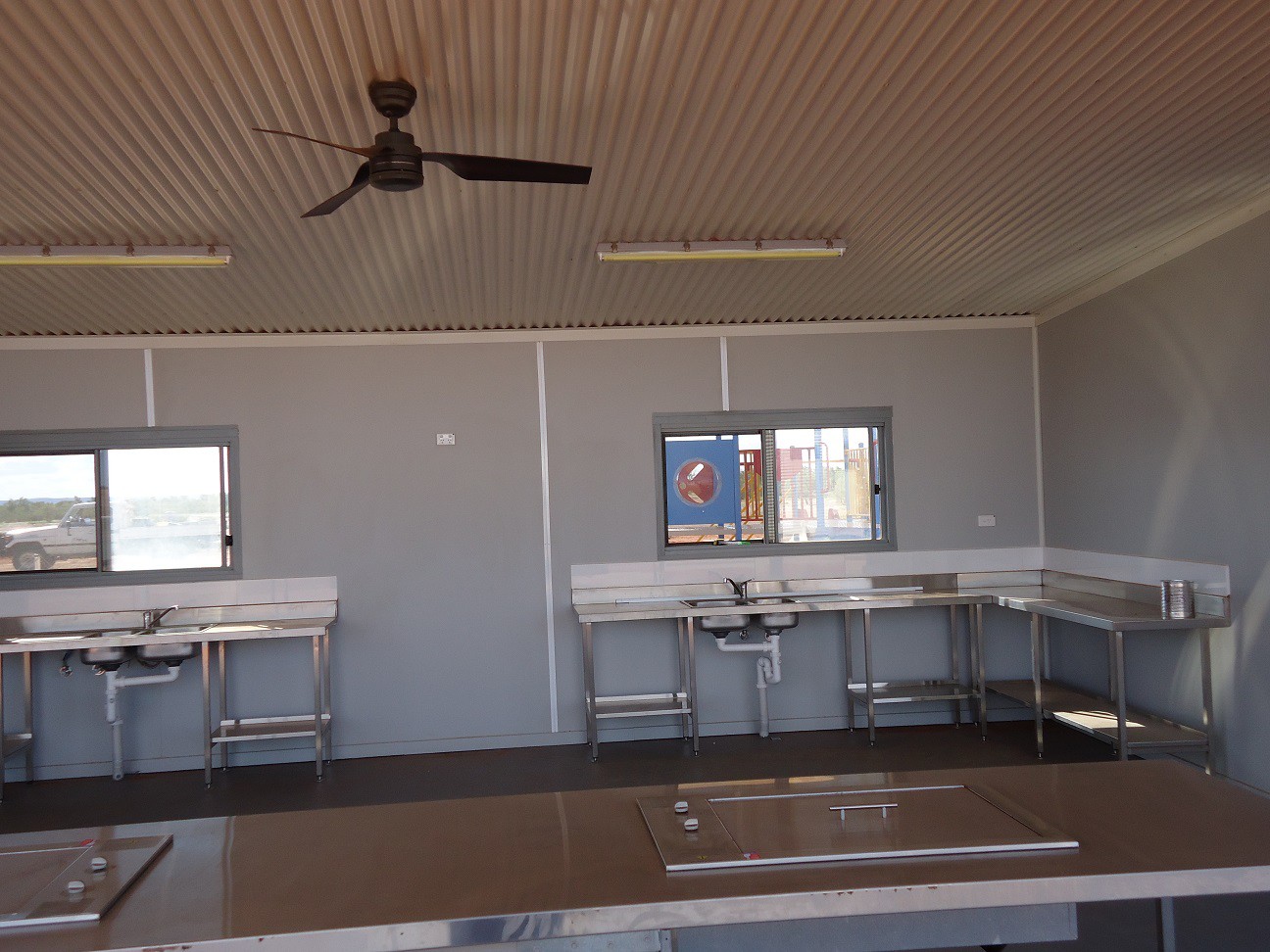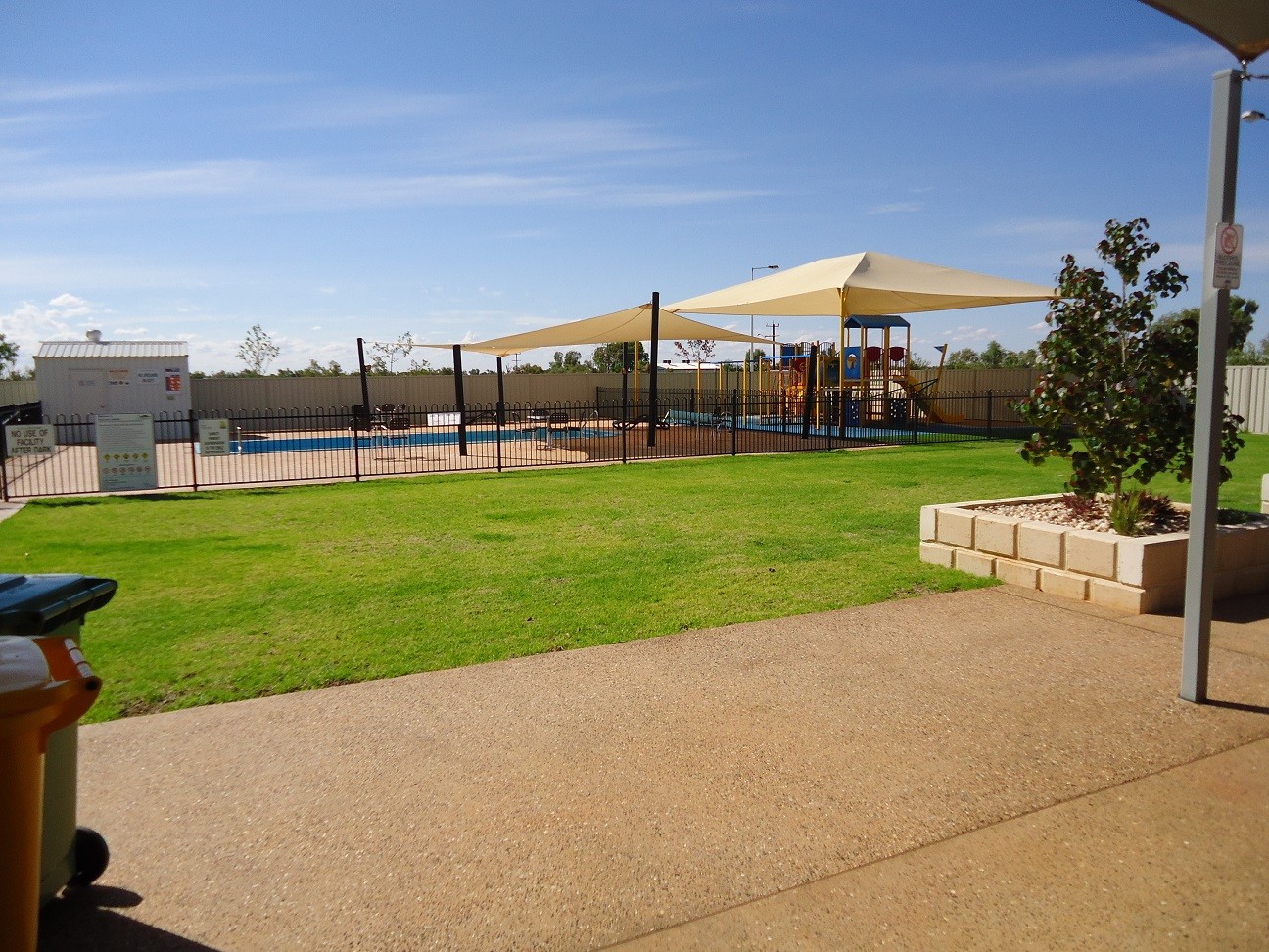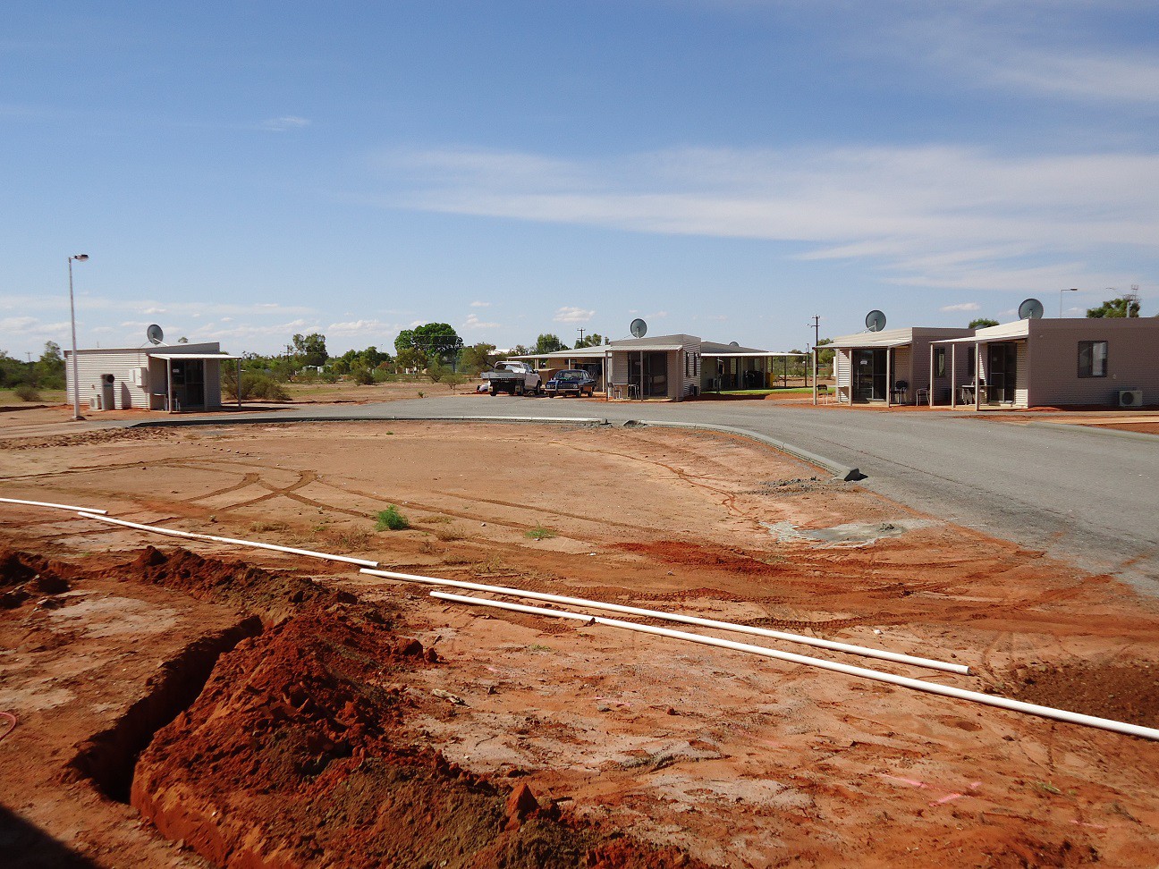 A new Roadhouse (includes Pub & Café) and Caravan Park has been built and is open for business, up on higher ground. Some finishing touches are still being done (eg; retic for lawns, kerb & guttering, fitting out of campers kitchen (fridge installed while I was there).