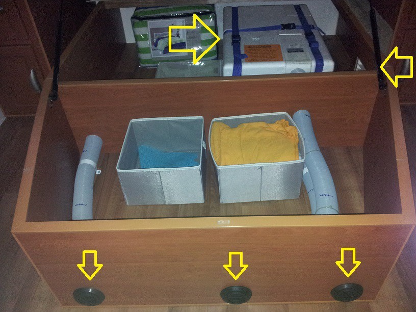 It looks like someone has thrown a polystyrene esky under the bed. It has 3 outlets. An inside the van return air duct and undervan ducts as well.