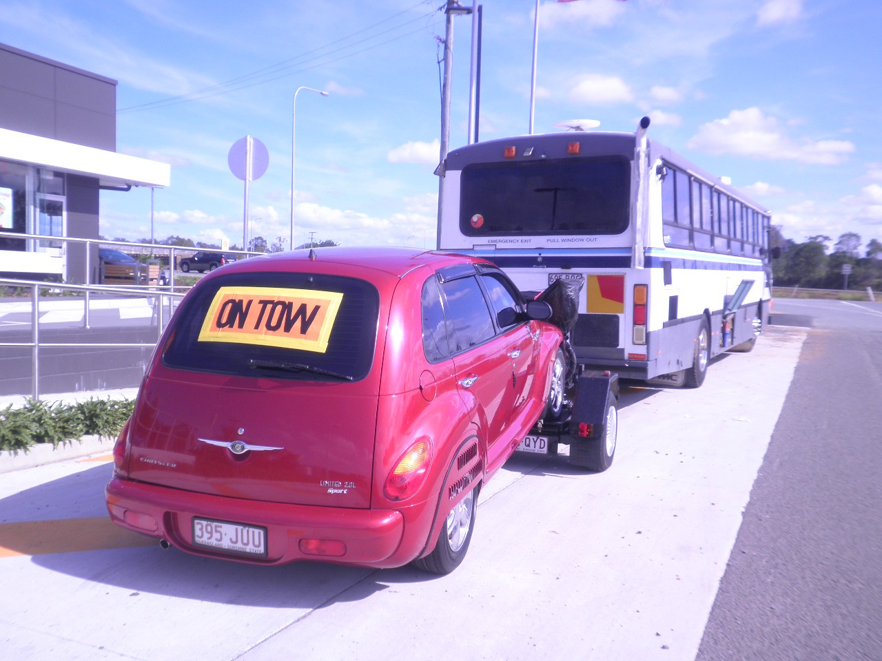 1989 Mercedes coach. We tow our car with a Gypsy trailer with swivel . Works well but they don't like tight u turns .
