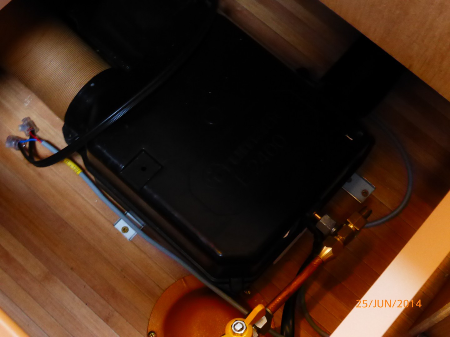 Gas heater installation now complete and certified under NSW regulations.Runs on about 3 to heat the van. Needed to have flue positioned below a window and consequently required window switch that kills the heater should the window in question be opened.