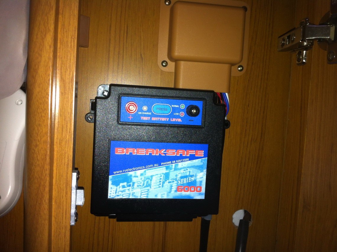 I've got a 2011 crusader manhattan. I had to replace the breakaway battery last year. The battery is enclosed in its own box hidden somewhere in the van. Mine is in a cupboard. The how to book recommends that the battery should be replaced every two years regardless how it tests. The most common battery is a 7 AH unit with slide on cable connectors. It cost me about $45 from a battery dealer in Mareeba north qld. Hope this post helps. OF/GN.