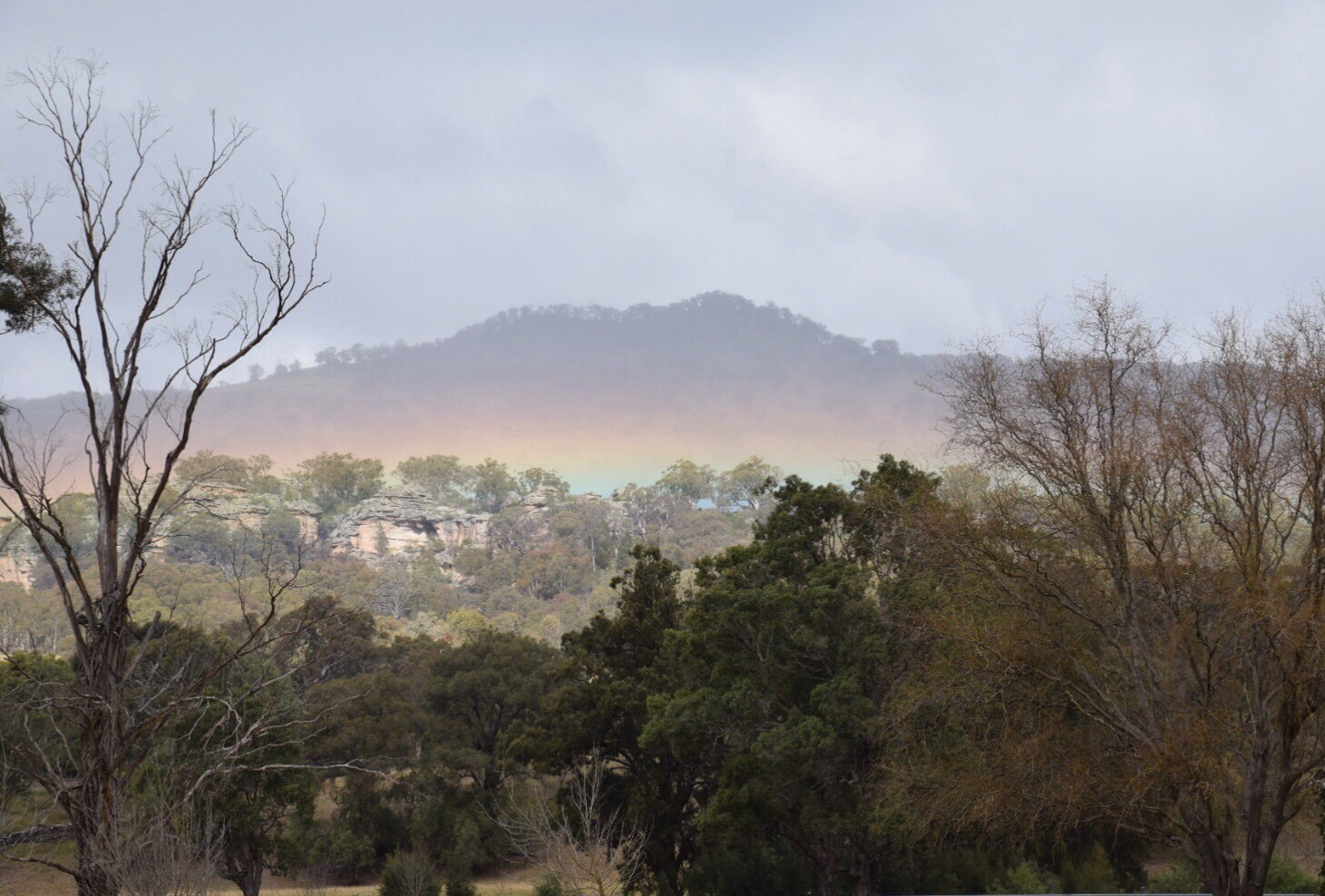 Juergen I am still at Murrurundi NSW. I am not sure about that pot of gold, this was not like a normal rainbow, it was more like a band of colours cutting across the mountain.