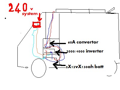The regulator is adjustable to .01 of a V input/output etc etc so I set it myself and the 10mm wire comes through the roof directly above the regulator/converter/battery's where all 3 are solars are linked together....so it's 3X110w panels @ 19 -20v ea going direct to the converter then from the converter into the battery's and from the batteries into the 2000w inverter (all within 2M distance in total) which then goes to a mains type switch near the mains inlet (which goes to a trip switch) so I can switch from 240v external to 240-12v inverter power once turning the inverter on obviously.
