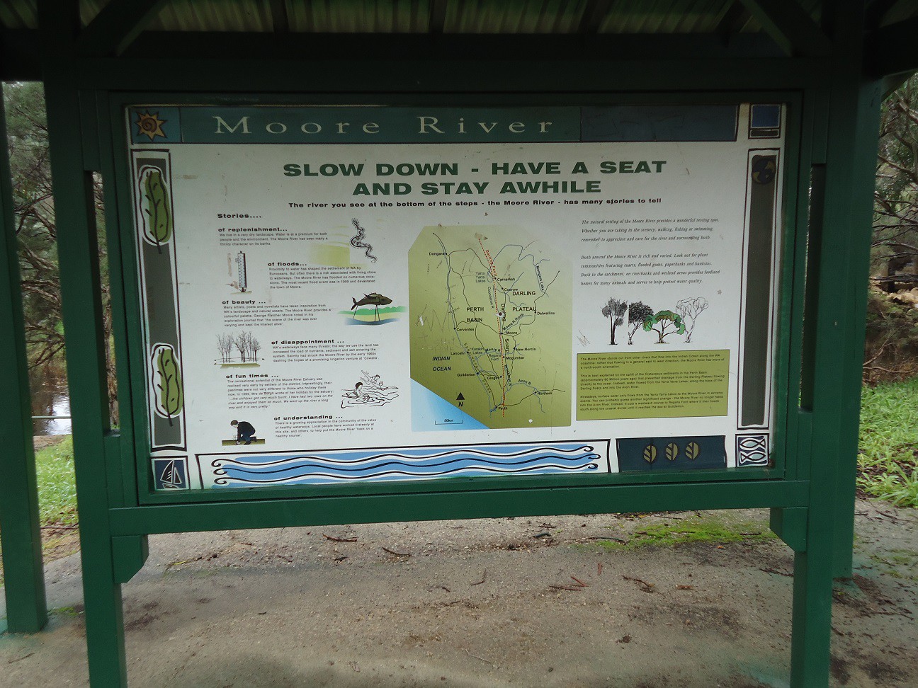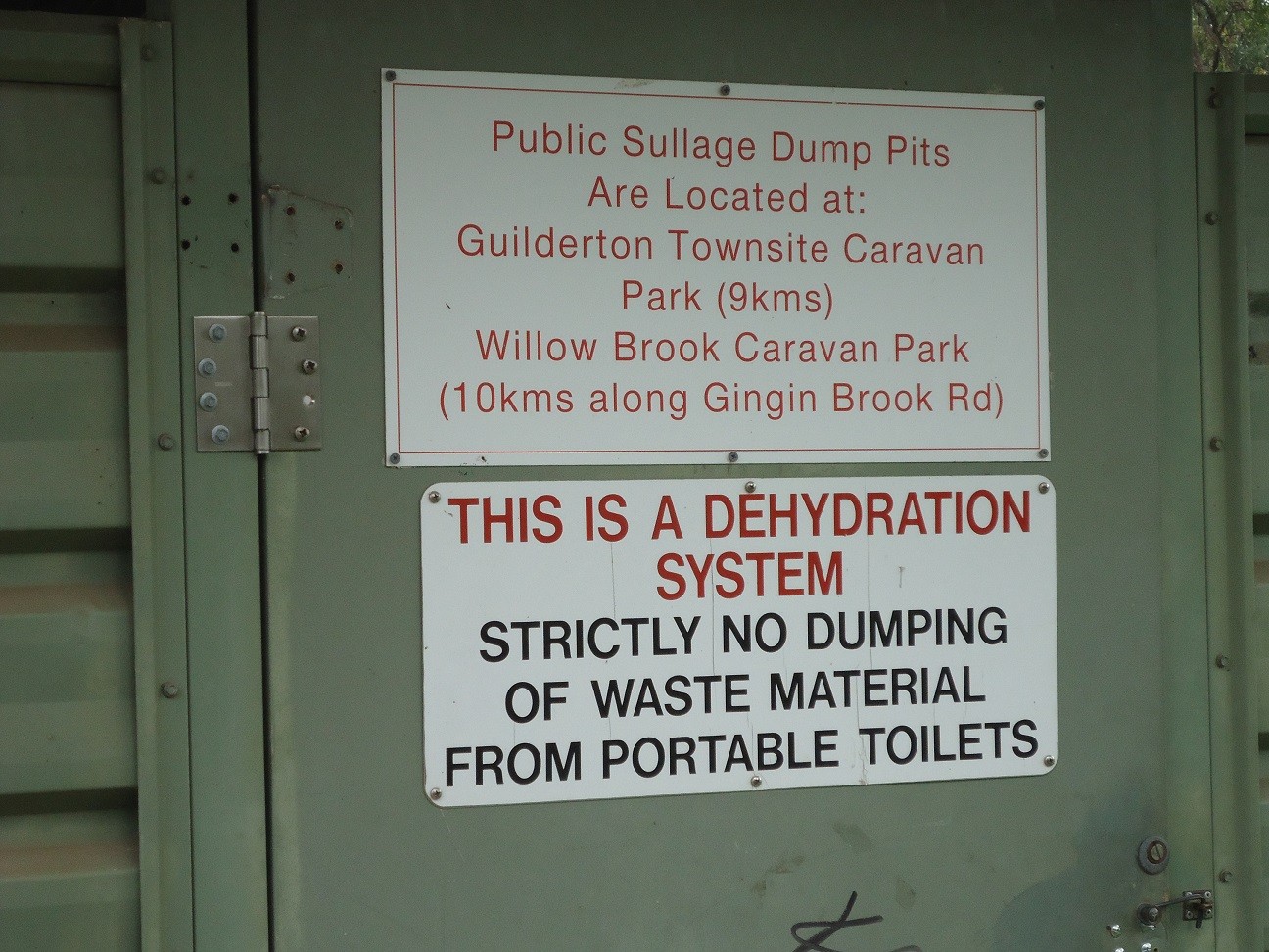 See Camps 7, location 280. Dump Point and toilet, no water or showers. Next to the Moore River, not far from Guilderton turn off.
