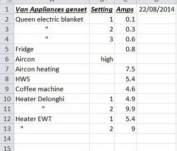 Might possibly use microwave, say several x 1 minutes, to reheat coffee after chatting to other GNs!!!! I guess there could be 1 hour of the Delonghi 4.9 amp heater in the morning and evening if we don't have either gas or diesel heating installed yet.