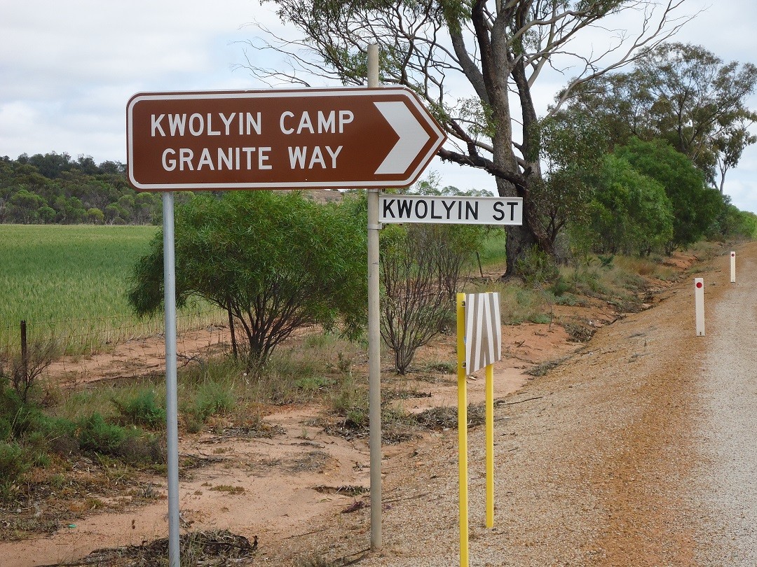 For Kwolyin rock campsite, looking at the map there are two ways in, one on a bush track that goes past Kokerbin rock but a bit further down the main bitumen road between Quairading and Bruce Rock there is a bitumen road turn off that goes past Kwolyin, is that the best turn off and is the Kwolyin turn off clearly marked on the intersection sign etc