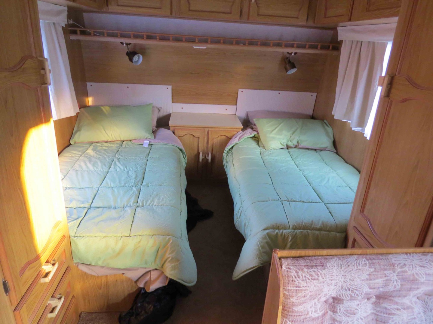 Might be hard to see but new vynil tiles to the floor as well as new matresses, and full bedding..