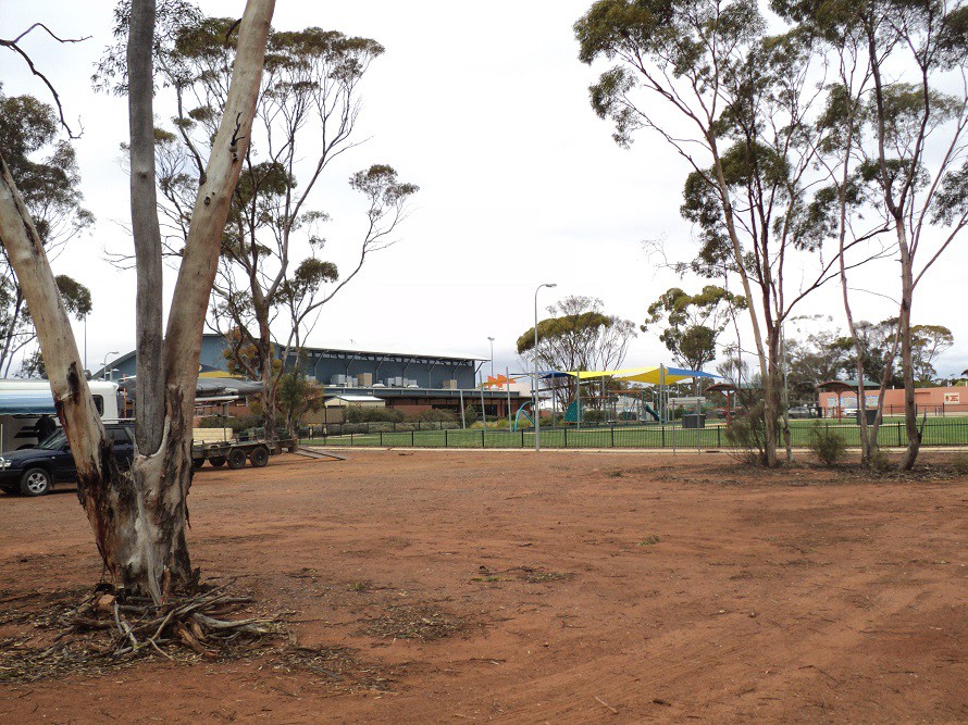 We are in the relatively newly opened RV 24hr stop in Kambalda WA. An area in walking distance to supermarket, and shops. Not a huge area, but possibly at least a dozen, parked sensibly could fit in here. There is a dump point, and you can get a hot shower at the Recreation Centre, just next door for $2!! Council are still working on it, not gravelled yet, but solid underneath, so you won't get bogged.