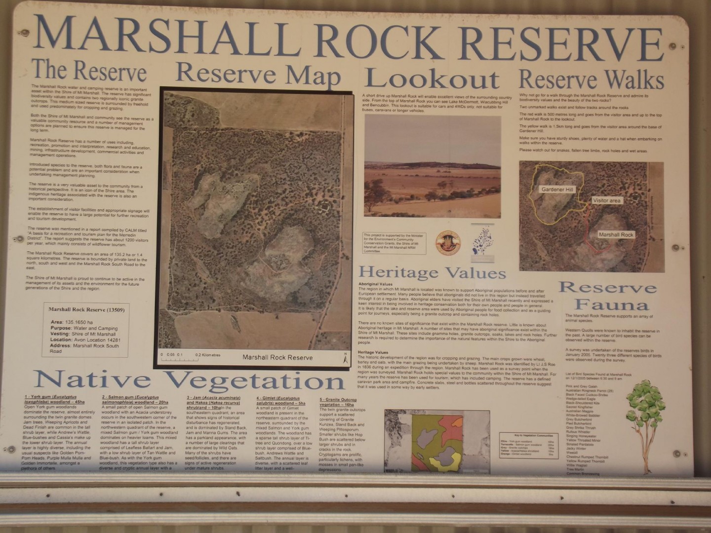Between Mukinbudin & Bencubbin. Nice spot, new bush toilet, couple of tables, rubbish bins. Large area, several walks and near Pegandes sheep yards