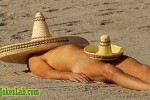 For the sake of civility, and to keep it from getting sunburned, he had a hat over his private parts.