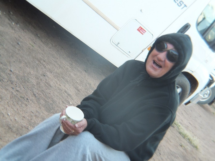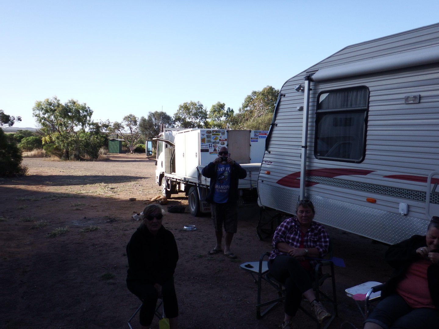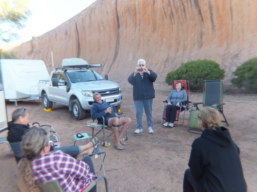 Greetings Earthlings, We camped at Pildappa rock , last night,, pic above is Mel,(MSG) a lurker on the Gn, was that cold yesterday she looked like a bloody blow fly with the glasses on ,,, met up with Phil C, (Phil and Pam) a couple of fruit loops,, Laurel and Hardy, had nothing on these two ,, had a great time,,,,, stay excited , Billeeeeeee