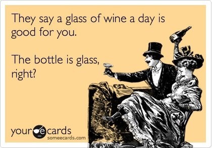 my glass is small but i fill it up a lot. i don't have a drink till 4 pm & it's gotta be 4 some where in the world.