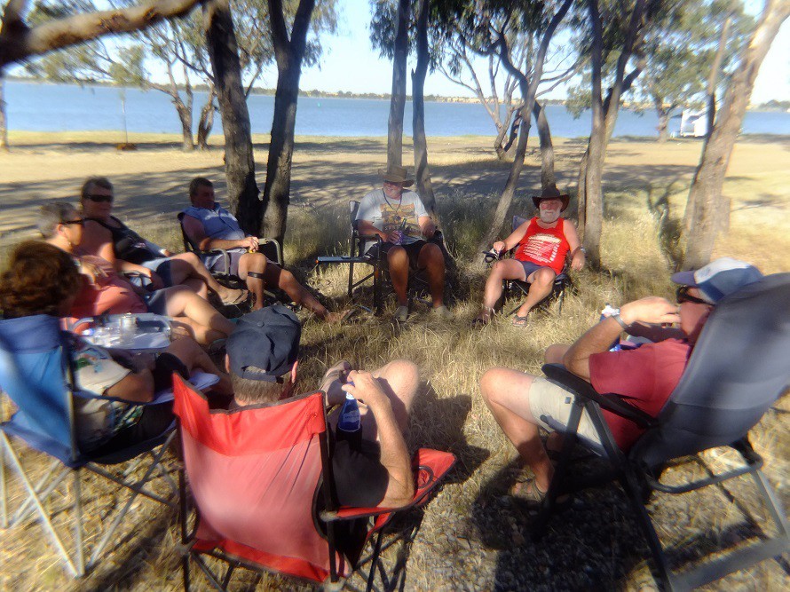 Greeting Nomads , had a very nice Happy hour, this afternoon, A lady that we met in Tassie last year,, Denise, , came with John, today,, good to see her again ,,,,,,, stay excited Billeeeeeee
