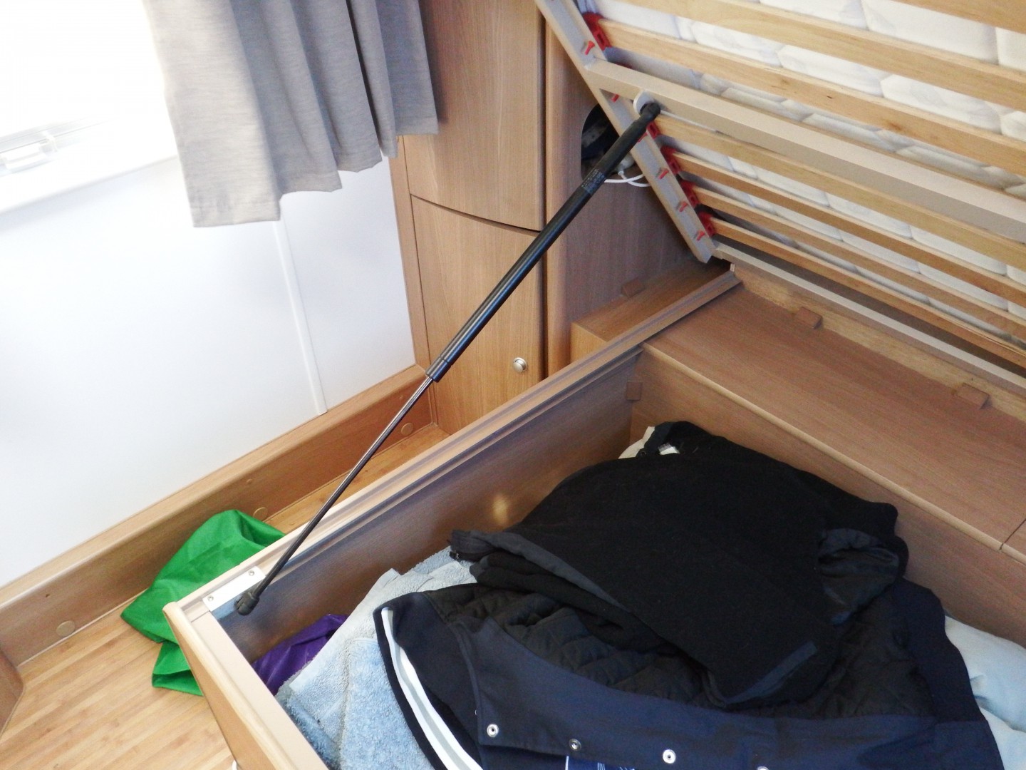 Thanks for the idea Peter but I think our bed is quite a bit heavier than the standard caravan bed so might not be much help.