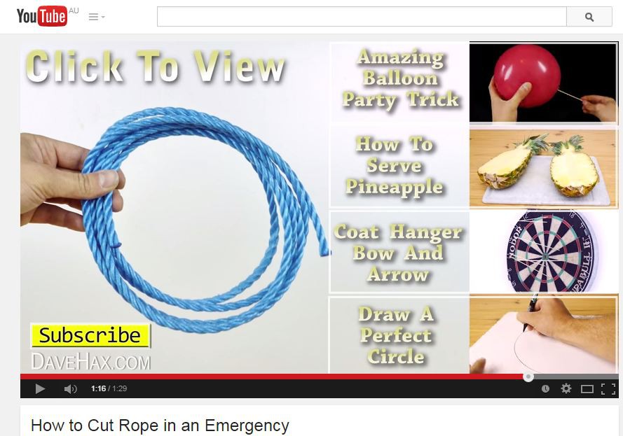 How to cut a rope in an emergency without a knife or a pair of sissors , cheers. http://www.youtube.com/watch?v=eCNwxqP7l44#t=76