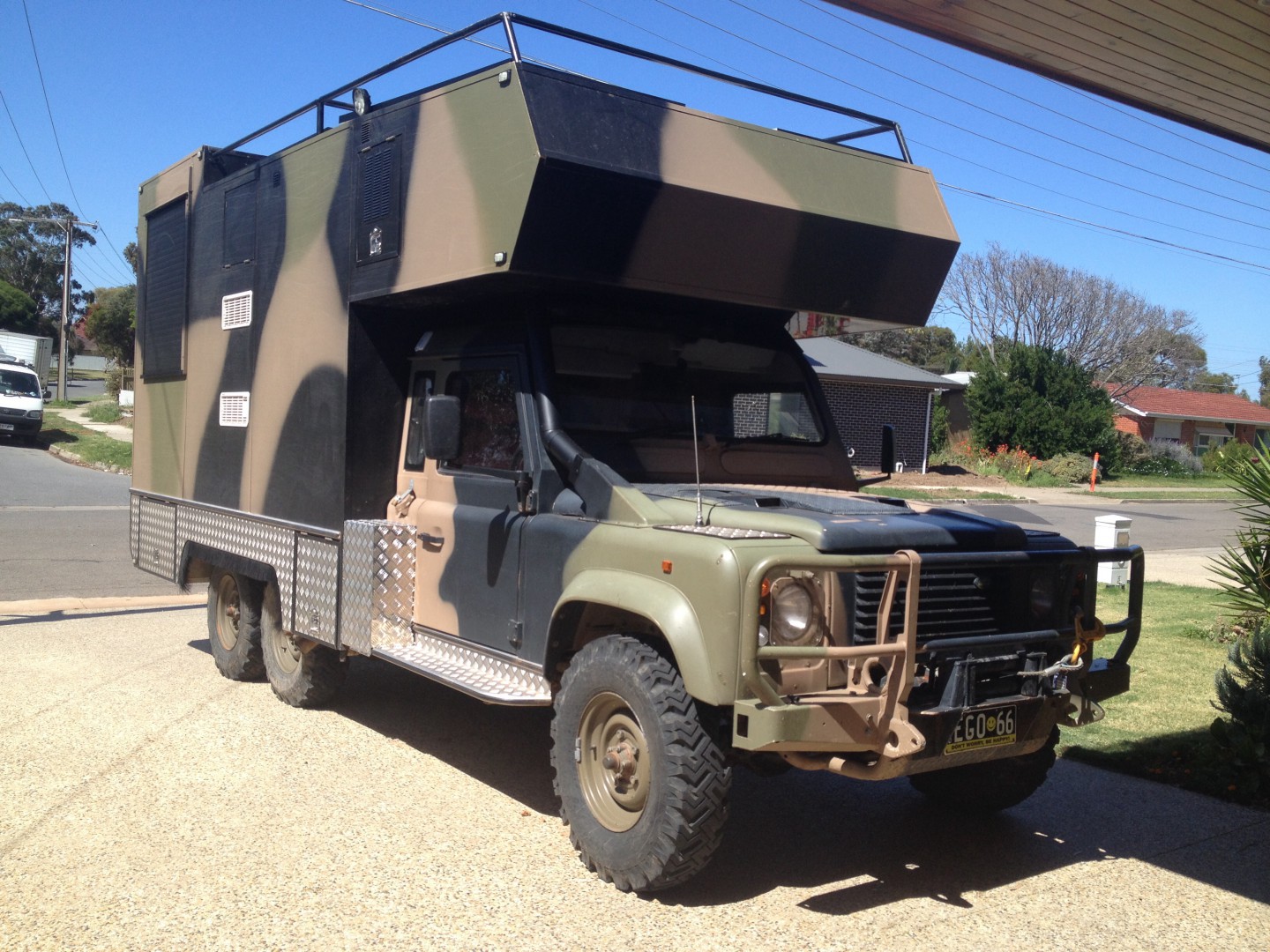 I was travelling up the Hume four weeks back. I saw a long wheel base land rover wagon heading south. It was towing an identical land rover wagon that had been cut off at the windscreen. It looked well done. I'd assume the towed one was his accommodation.