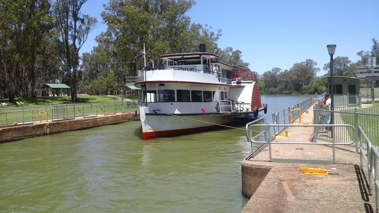 Went to visit the boats using the lock . There was 26 locks planed along the Murray