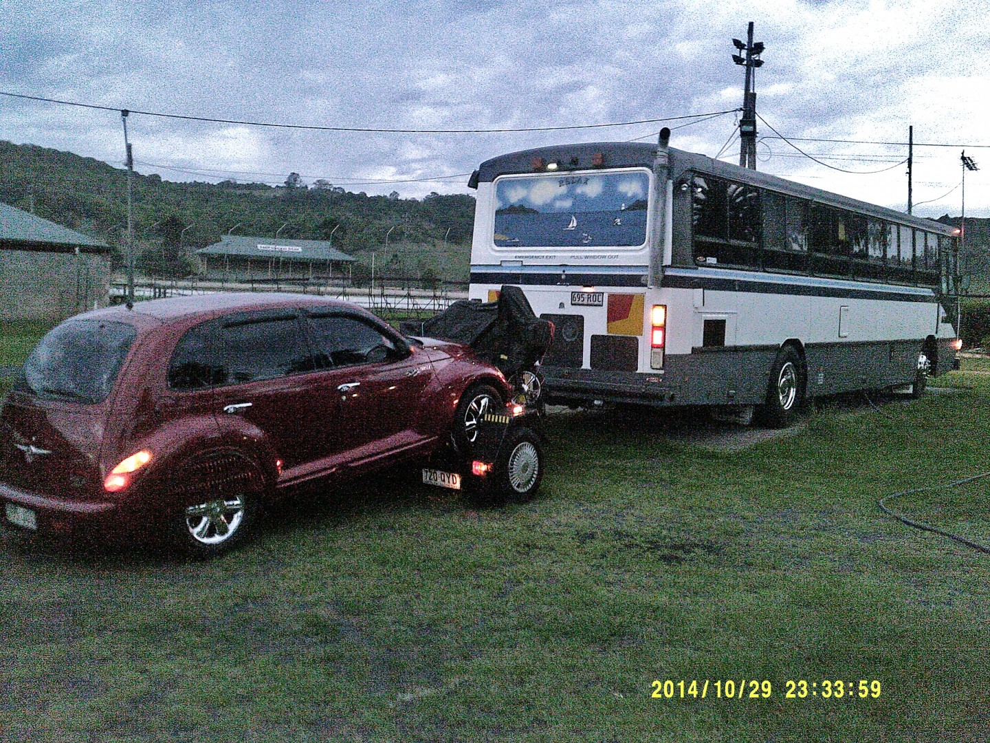 Our mercedes 40ft and trailer. Been a very good and reliable rig. Push motor 250hp turbo...4 to 5 klms per litre .