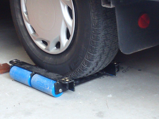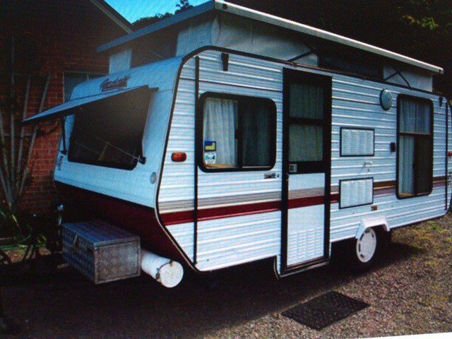 Built special drive on trolleys so we can push caravan sideways across the garage. We tow it through with the Ford out the back door, unhook and push, This gives us access to the inside of the van when in the garage.