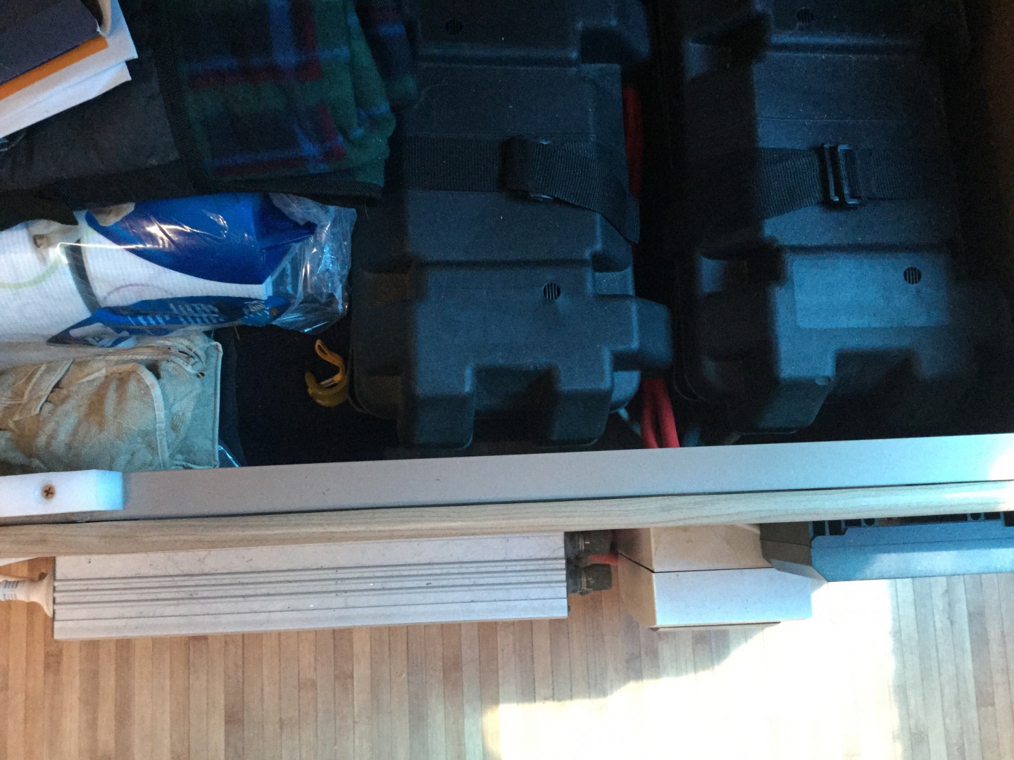 The new van has its batteries in boxes on the chassis so will either fit the inverter in the tunnel boot or above the batteries in the van somewhere as this one does not have a remote switch (unless I or my auto electrician can work out how to set one up for it)