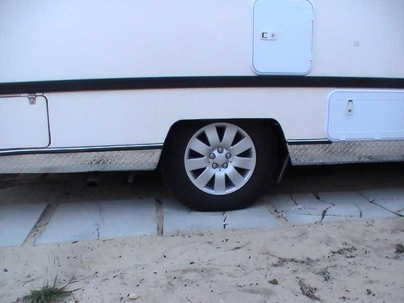 The other week coming south in our car and caravan blow a tyre on the left of the van and hard difficulty in getting the jack under. After using the block of wood 2 scissor type jacks with the help of my wife we had it up higher enough to change the wheel but not before nearly loosing the spare down the embankment as she had lent it against the rear of the van as we jacked it up it decided to roll away.