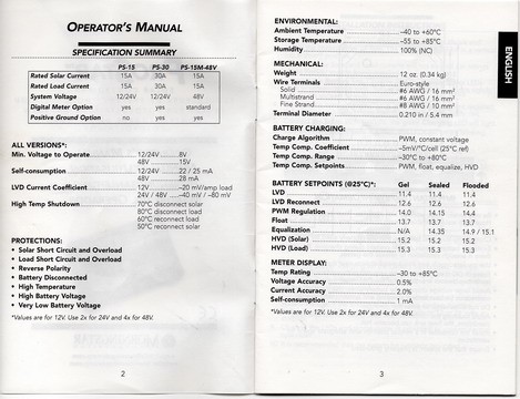 Looking at the van paperwork the solar panel fitted was a 120 Watt. I will count the cell panels tomorrow. I will have to check the model number of the Setec tomorrow to see if it does have a low voltage cut out. These are the Setec specs from my manual.