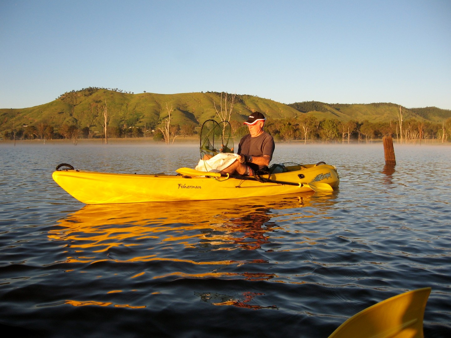 Getting on well with campers near where I launch the kayak, one has a Hobie kayak and can paddle or pedal and cover distances easier than with my inflatable. He goes right round the corner another as far as I go where the wind is stronger and comes back with many more red claw. He has the right idea and has a holding net bought from Monto and keeps his catch alive overnight to get enough for a bigger meal.