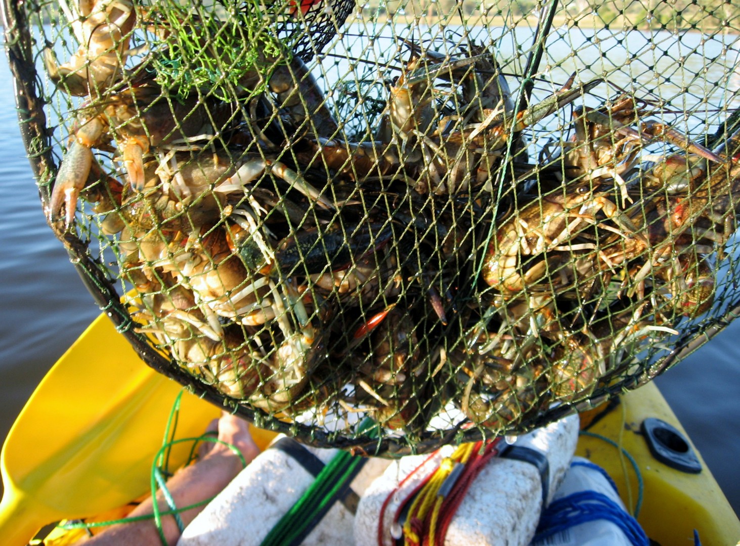 I carry as many as 16 folded traps in my Viking Fisherman kayak. (Includes my four & those of 3 of my friends), but you have got to be very organised. Lost my best $14 Wilson trap overboard in choppy water. I often have trouble in lifting the heavy bag of catch out of the well of the yak. Then comes the tiring job of processing them after breakfast. Time then for a leisurely lunch, beer & nap under a tree before the evening rounds.