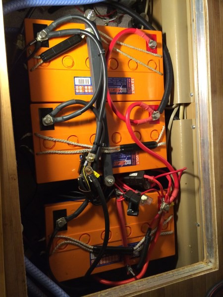 Over the wet and miserable Easter weekend , I only got a day and a half out of my 3 x 100a/h Batteries before I had to turn Gennie on. Solar panels weren't not generating because of the overcast wet conditions ( have 400w solar on roof ) . I was running 175lt 12v Waeco Fridge/Freezer and the 40ltr Engle constantly running everything else was intermittent , radio , tv , lights (leds) , water pump. It was the first time we have been on 12v since buying the motorhome in December last year , I'm thinking their is a problem with the Batteries , not sure how old they are , as I couldn't find a date .