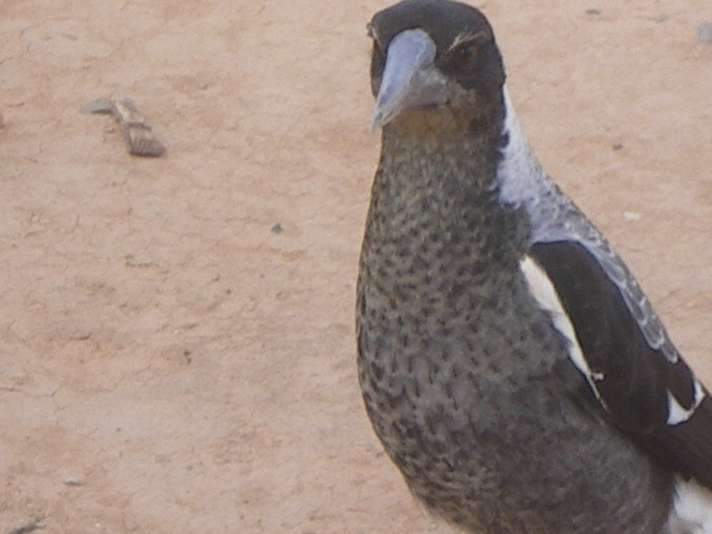 Me thinks its a speckled chest, long beak, big foot honey eater???? Any takers LOL loving the bird life, this one came right up to me, its collecting stones.