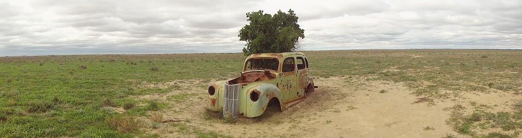 The ''Homestead'' is actually the historic old One Tree Pub, a Cobb & Co stop in the past. It's about 40kms above Hay beside the Cobb Hwy. Privately owned & only open to the public for events like vintage car rallies. The car was in a paddock along the Hay-Maude Rd.