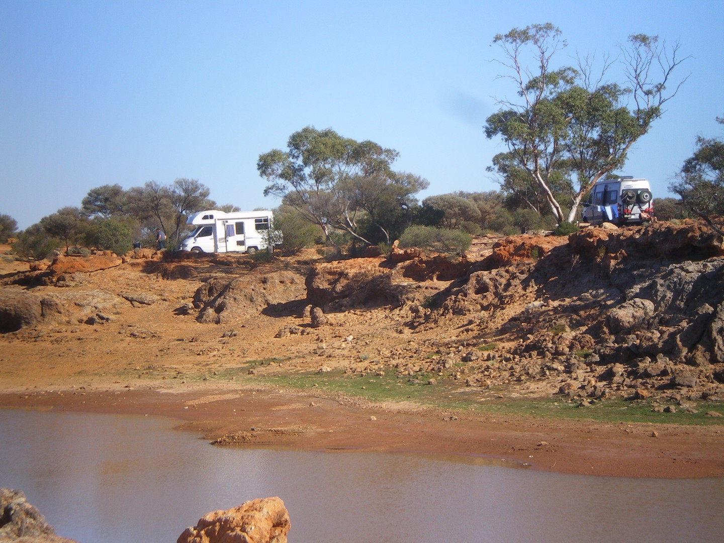 freecamping at Leonora WA, lovely clean town, friendly locals too,,,, right next to the open mine pit, toured the Hoover Mansion, had high tea, I have to tell you, IIts not my thing, only did it cause shekon made me do it, I spilt the coffee, guess I ain't no lady LOL, having a ball, been to Lake Ballard, Niagra Dam, will post eventually in my blog . happy travels . Fran