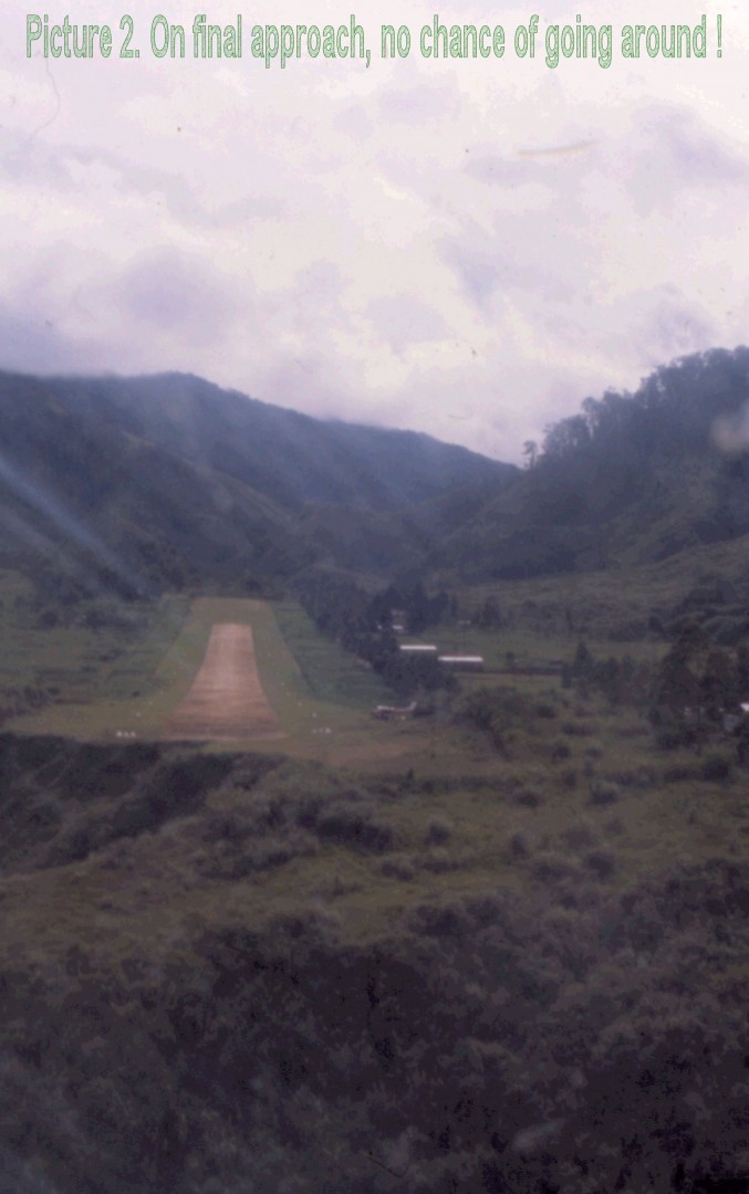 Many airstrips in the highlands of Papua New Guinea are notorious for their difficulty, and the one at Usarumpia, in Eastern New Guinea, is no exception. This one-way strip lies in rugged mountainous terrain at an elevation of 5700 feet. It is only 450 metres long, with a gradient of 1:10, and the lower end of the strip drops sharply into a mountain stream. Once having begun a take-off, there is little opportunity to abandon it without being involved in a disaster.