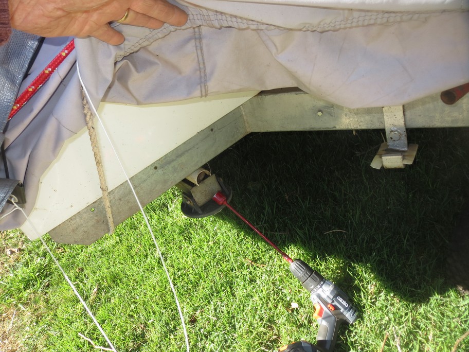 I've simply attached a short length of 25mm plastic pipe to the chassis at each leg to guide the winder to the head - you only have to lean down, insert cordless drill winder in hole a pull the trigger. Simple and cheap. I'd add a picture but it's dark outside.