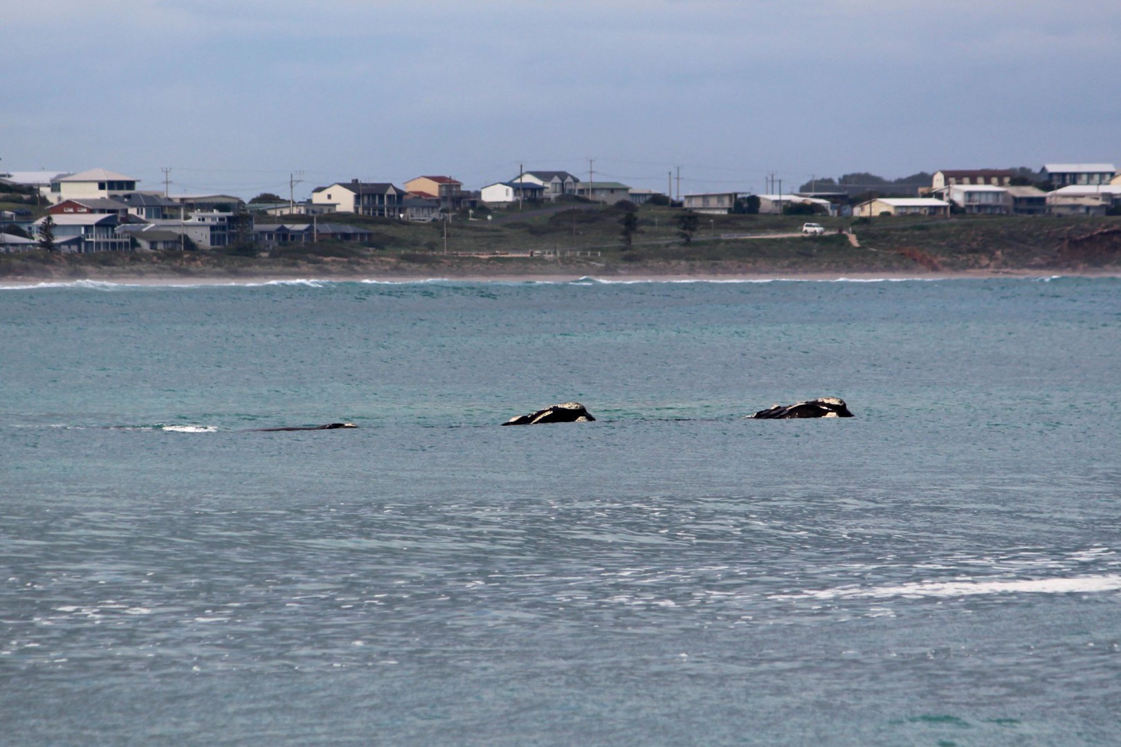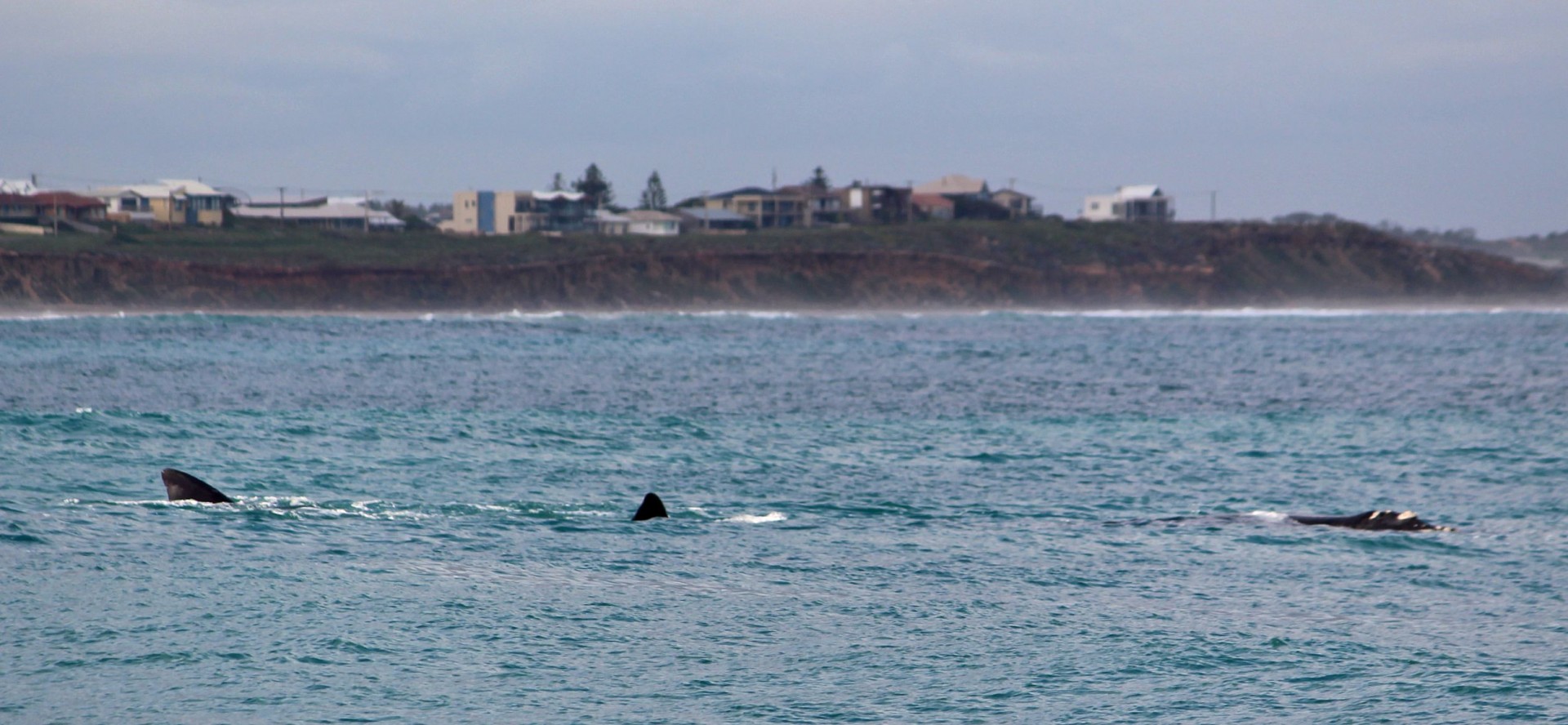 This photo shows 3 whales.