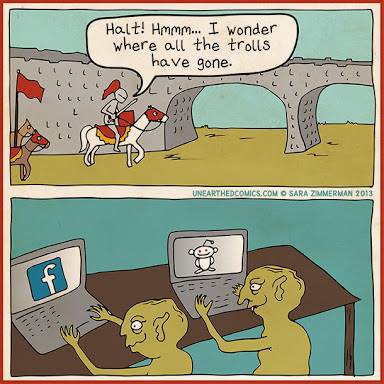That sounds like a Grimm warning Vic..lol...do you feel they may have to re-write the 'Three Billy Goats Gruff' for modern audiences....although it will lose much in inter-action terms...".there was this nasty troll under the bridge seated at his computer and he was so engrossed on his Facebook page, he did not hear or even care about the three billy goats gruff crossing his bridge....