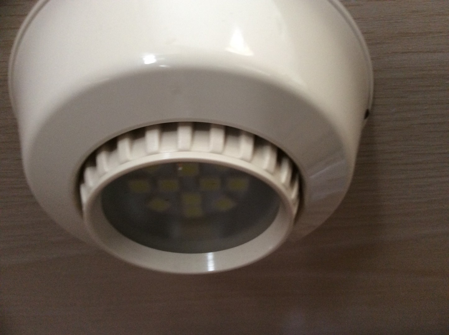 Those 'eyeball' type lights are the ones I had. The original bulbs were halogen which gave off a lot of heat scorching the bottom of the fittings, one burnt right through so was close to catching fire. Mine are long gone so I am unable to provide a photo.
