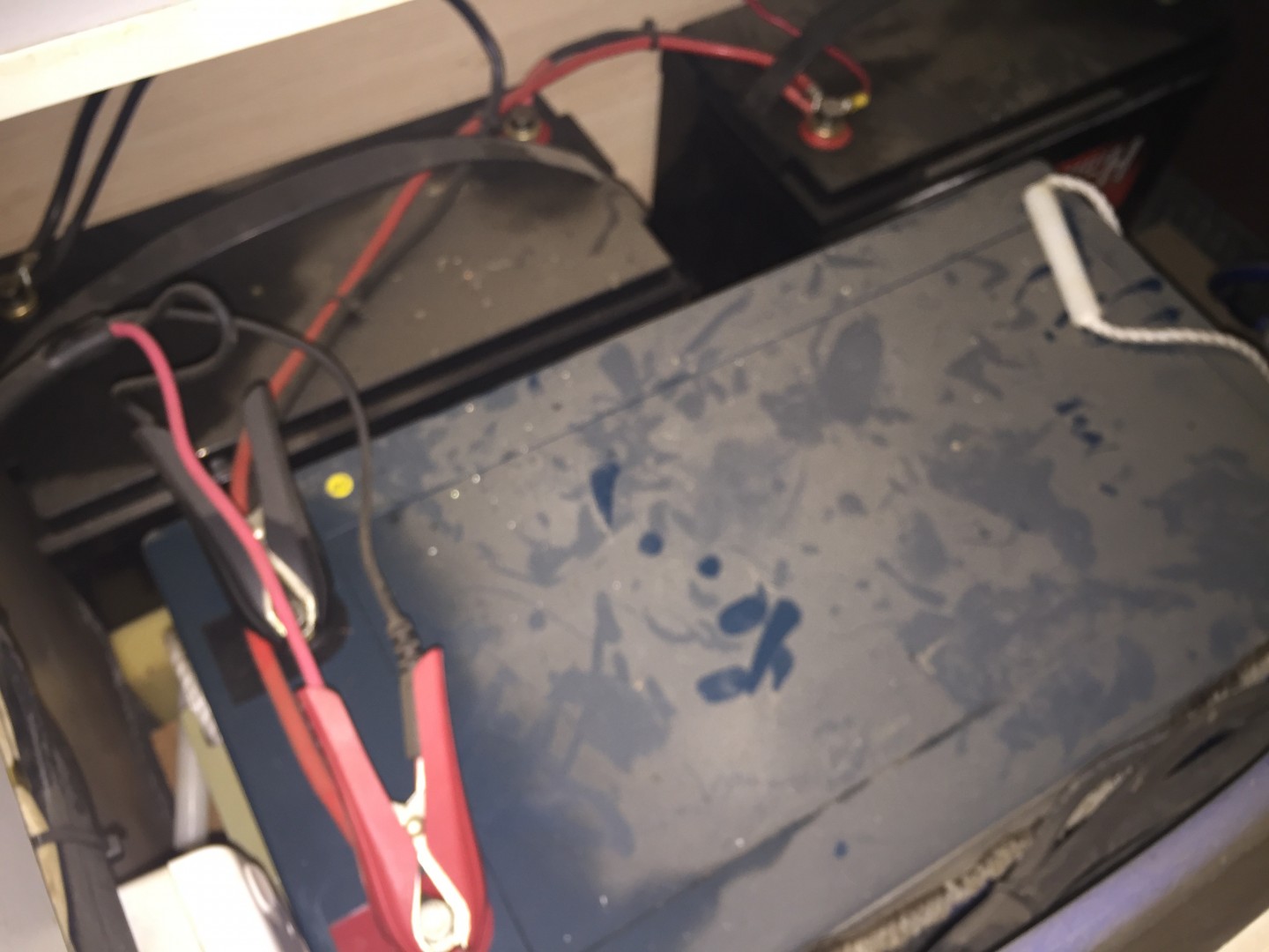 . It's got two standard house batteries another huge green battery thing connected together but I have no idea how this all works..