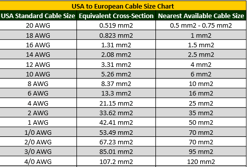 And they are only rough equivalents because the tolerances on insulation thickness to actual conductor size of auto wire is pretty rough. The chart from Redarc shows 6mm auto wire as 4.56mm²