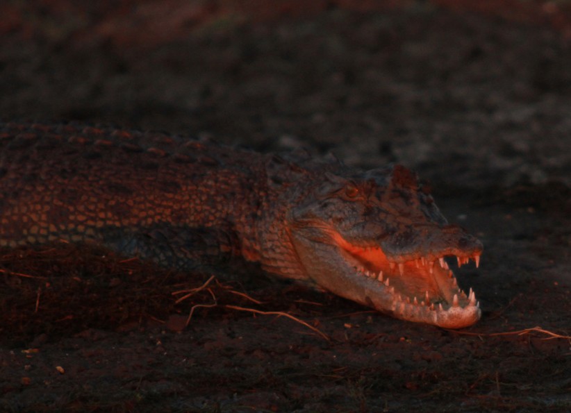 Crocodiles get their energy from the sun during winter. This croc was soaking up the very last rays of sunshine illuminating his awesome jaws.