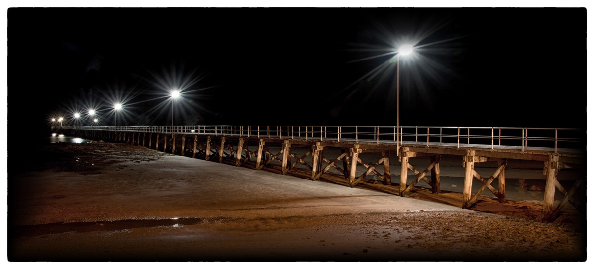 This shot was taken at Moonta Bay. The bright lights illuminate the way down the majestic jetty.
