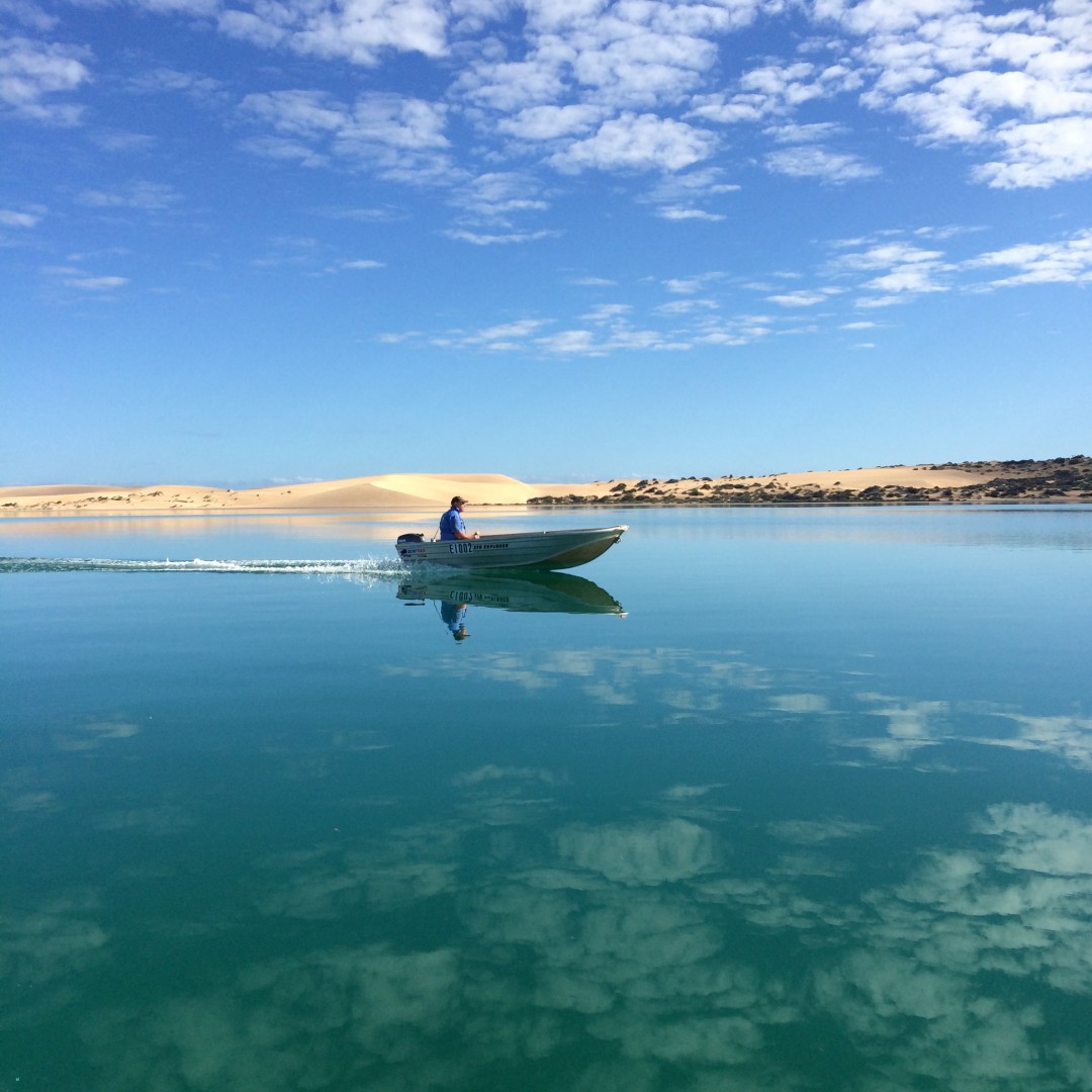This photo of me in my tinny was taken by my mate from his tinny,a lovely day to be on the water at Useless Loop, (shark bay, w.a.