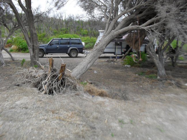 Tree damage after strong winds on the beach at Cliffhead North, just South of Dongara W.A