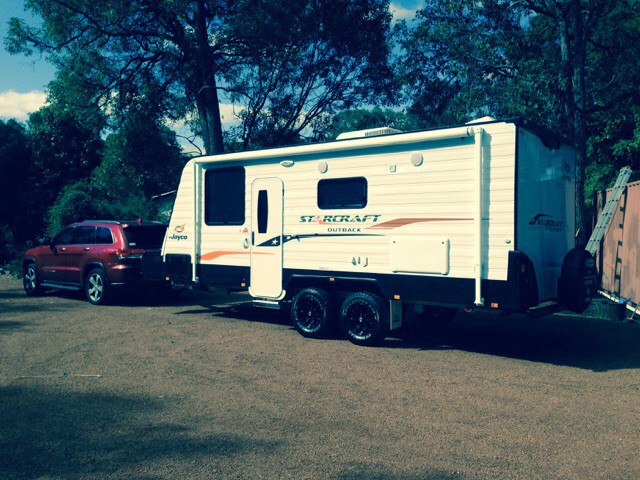 We're onto our 2nd caravan, it is a 2015 20' Jayco Starcraft Outback. We tow it with a 2013 Jeep Grand Cherokee Limited. We are extremely pleased with the tow vehicle as it is doing a great job. The caravan is pretty good but has a couple of issues but what caravan doesnt.
