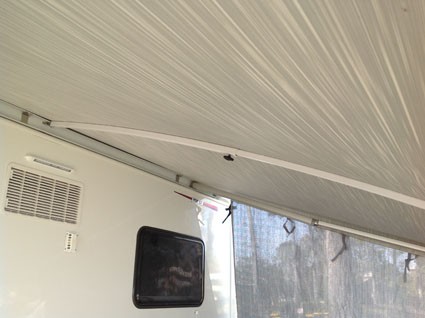 Hi Dave, So sorry to read of your awning doing a back flip. My Auto-trail also had a sissor type awning made by Thule Omnistor. During the first two trips from new it frightened me every time the wind came up. I had read stories of motorhomes in the UK having similar problems to yours. The solution for us was to fit an anti flap kit & a centre curved rafter. I purchased them from Aussie Traveller & had them fitted at their Brisbane warehouse on my way through. Additionally I use tie ropes. Those additions plus a side & end wall has worked a treat for us. I am now able to sleep at night without worrying about the awning failing. Alan's comments above are worth noting. Thus I would suggest you try to find an awning that can replace your failed unit and then fit the additions I have mentioned. The Knaus MH range is a good looking set of vehicles and you do not want to spoil it with an ugly awning. I have added a couple of images to show how ours looks.