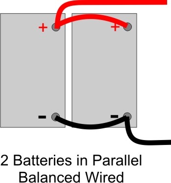 Note that the Power Out Cables are coming from each battery, first battery from Positive and second battery from negitive. This will force the draw and charge to be equally distributed between both batteries (Balanced).